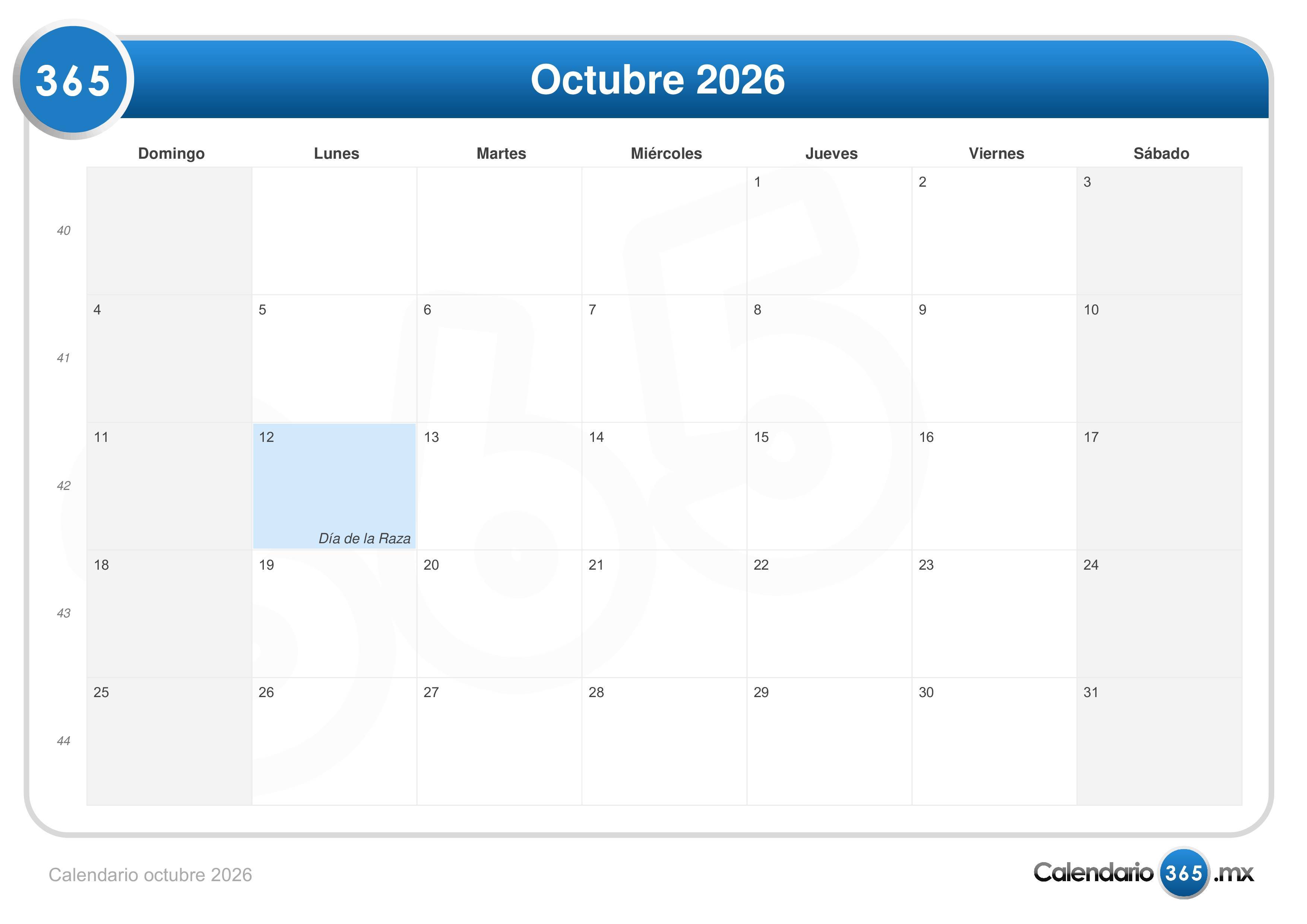 Este octubre 2026 calendario siempre es muy útil. Sobre todo cuando deseas consultar las fechas de tus vacaciones.
