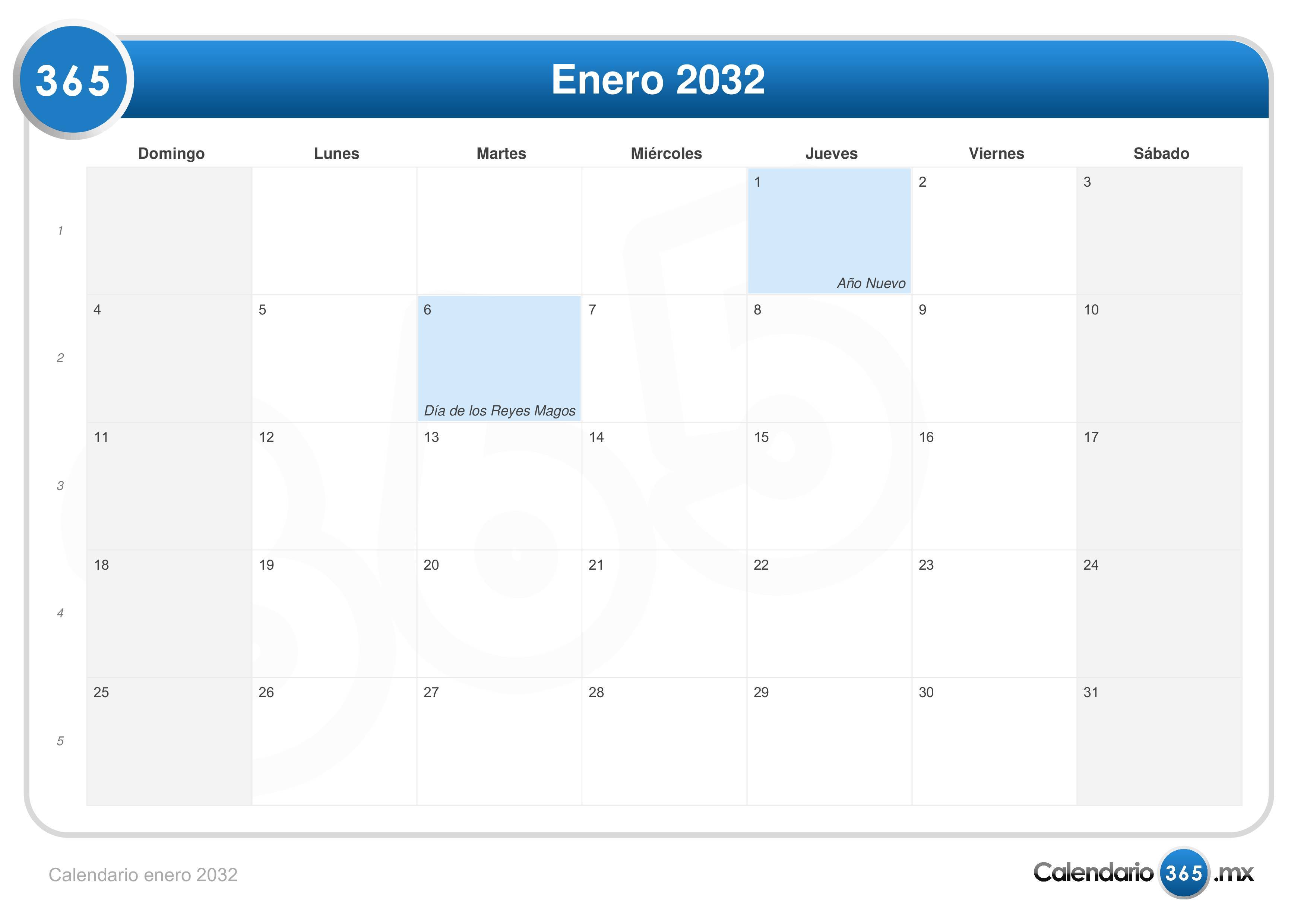 Calendario enero 2032